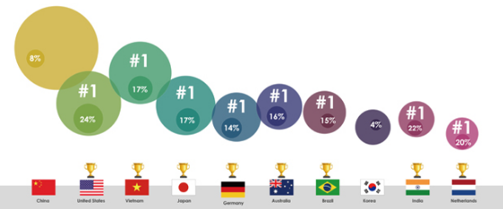 晶科能源在其中8個國家的市占率排名第一,其中美國、越南、日本、澳洲分別為24%,17%,17%和16%。