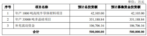 根據(jù)招股書(shū)內(nèi)容顯示,新疆大全此次公開(kāi)發(fā)行股票的數(shù)量不低于2.87億股不超過(guò)3.0億股,募集資金50億元,在發(fā)行后總股份中所占比例不低于15.00%,主要用于年產(chǎn)1000噸的高純半導(dǎo)體材料項(xiàng)目、年產(chǎn)35000噸多晶硅項(xiàng)目以及補(bǔ)充流動(dòng)資金之用。