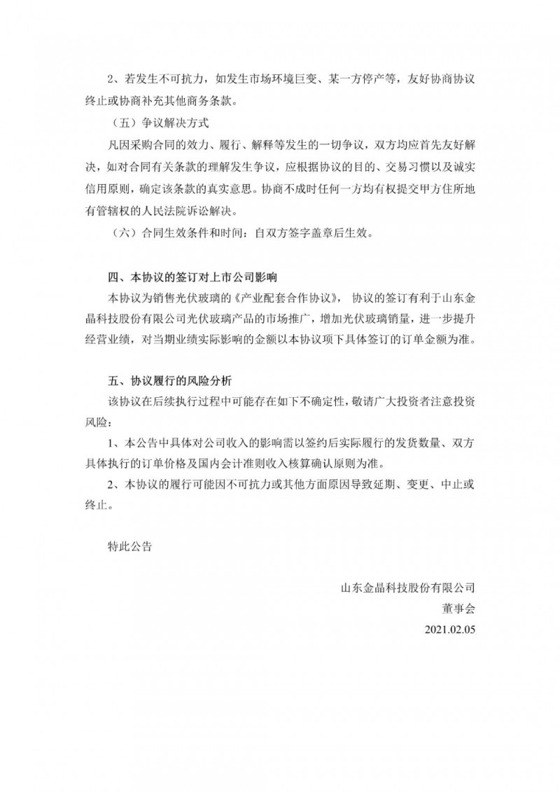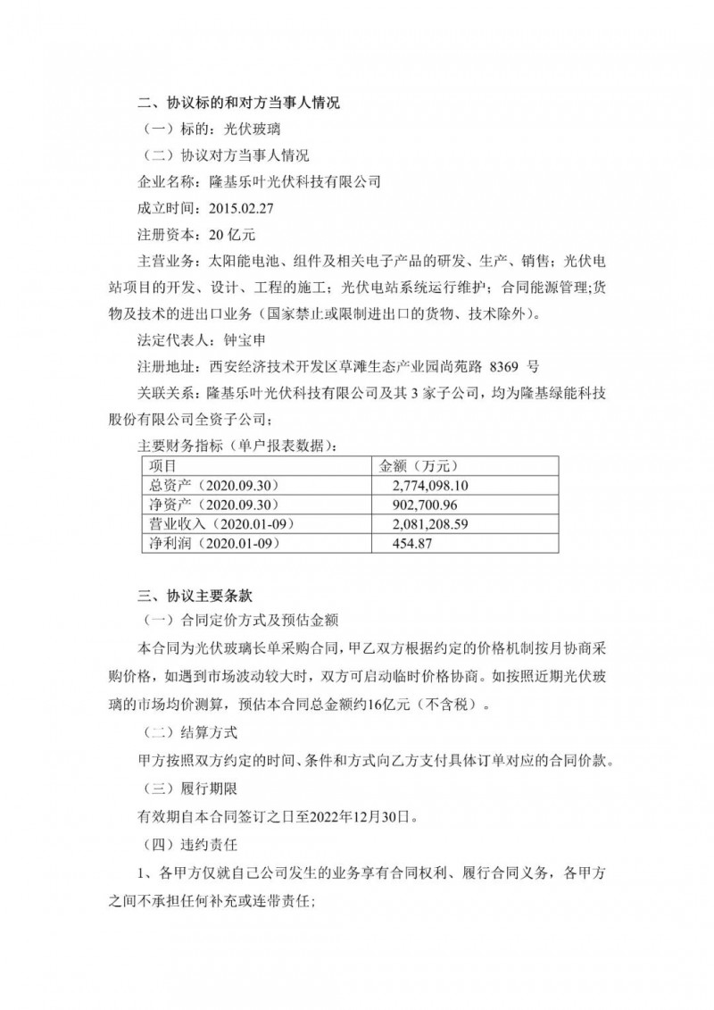 長(zhǎng)單采購(gòu)合同,按照近期光伏玻璃的市場(chǎng)均價(jià)測(cè)算,預(yù)估本合同總金額約16億元(不含稅)。協(xié)議履行期限為自協(xié)議簽署日起至2022年12月30日。