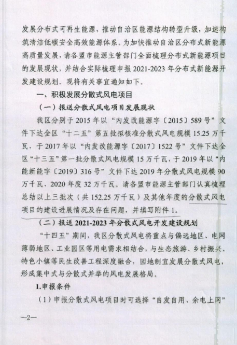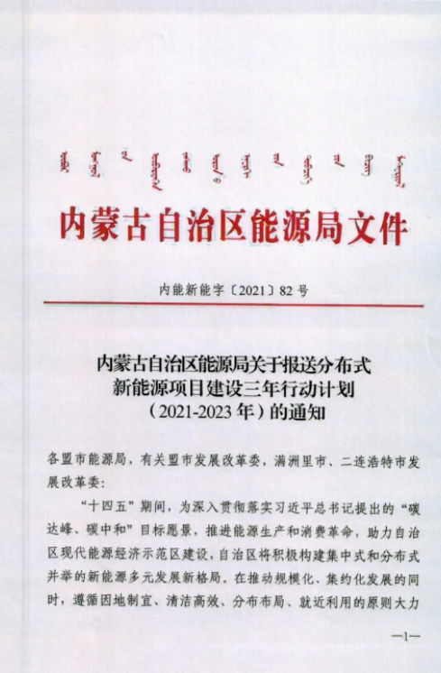 核心提示:僅限工商業(yè)分布式 內(nèi)蒙古開始申報2021-2023年分布式新能源項目建設(shè)三年行動計劃