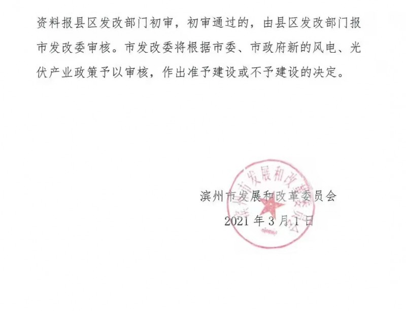 山東濱州暫停全市光伏風(fēng)電項(xiàng)目建設(shè)與簽約