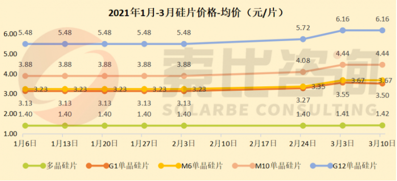 G12單晶硅片均價6.16元/片,最高成交價6.16元/片。
