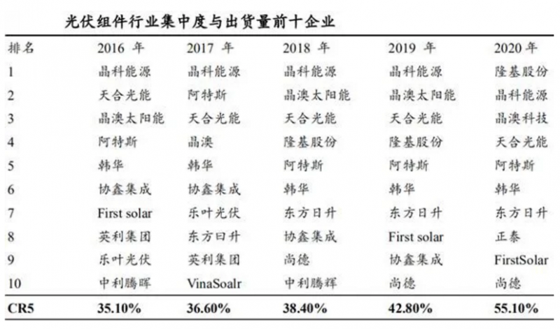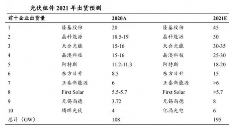 東北證券預(yù)計,2021年全球前十組件廠商出貨總量將達到約195GW,已經(jīng)接近2021年全球的總需求198GW,而2020年全球前十組件廠商出貨量占總量的55.1%,即使2021年前十組件廠商集中度大幅提升,假如2021年前十集中度提升為70%,2021年組件出貨量將達到278GW,遠遠高于全球的總需求,有80GW產(chǎn)能過剩,占總需求的40%,如果集中度達不到70%,那么產(chǎn)能過剩更嚴(yán)重。