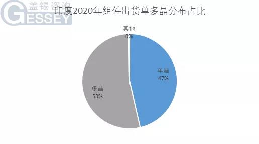 蓋錫數(shù)據(jù)顯示,截至2020年末印度市場(chǎng)光伏組件出貨量中,多晶組件占比53%,72片組件占比97%,330W,335W,405W位列功率占比前三名。多晶大版型在印度市場(chǎng)仍然占據(jù)較大比例。