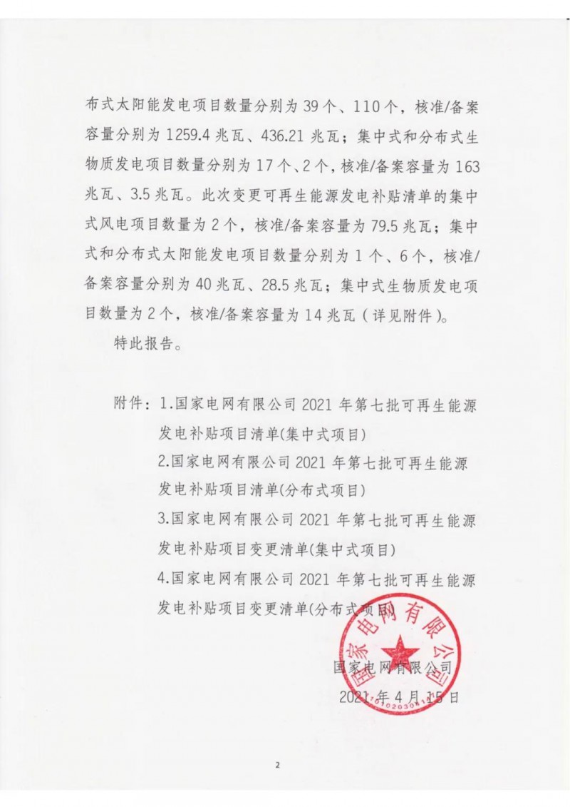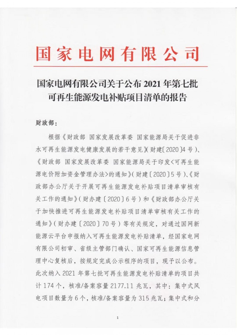 2021年4月15日,我公司已將完成公示的2021年第七批可再生能源發(fā)電項(xiàng)目補(bǔ)貼項(xiàng)目清單上報(bào)國(guó)家主管部門(mén),第七批項(xiàng)目清單及后續(xù)項(xiàng)目審核進(jìn)展情況,請(qǐng)登錄新能源云平臺(tái)查詢。