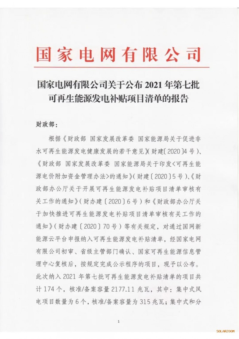 2021年4月15日,我公司已將完成公示的2021年第七批可再生能源發(fā)電項目補貼項目清單上報國家主管部門,第七批項目清單及后續(xù)項目審核進展情況,請登錄新能源云平臺查詢。