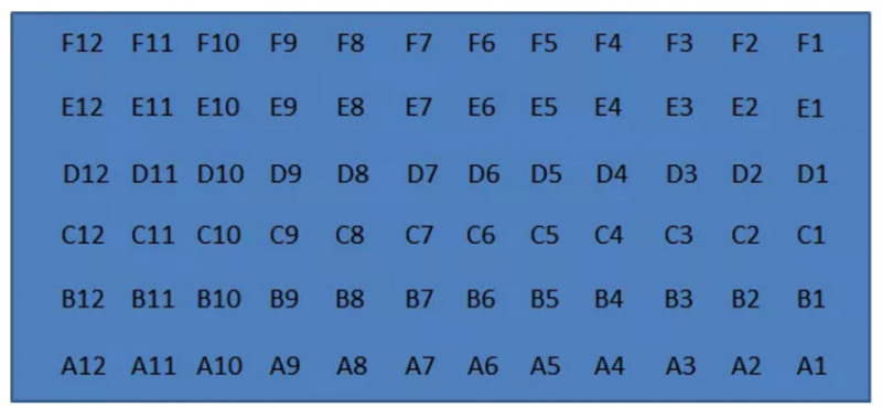 對一塊2mm厚度的光伏玻璃,在其表面均勻取72個點,分別編號: