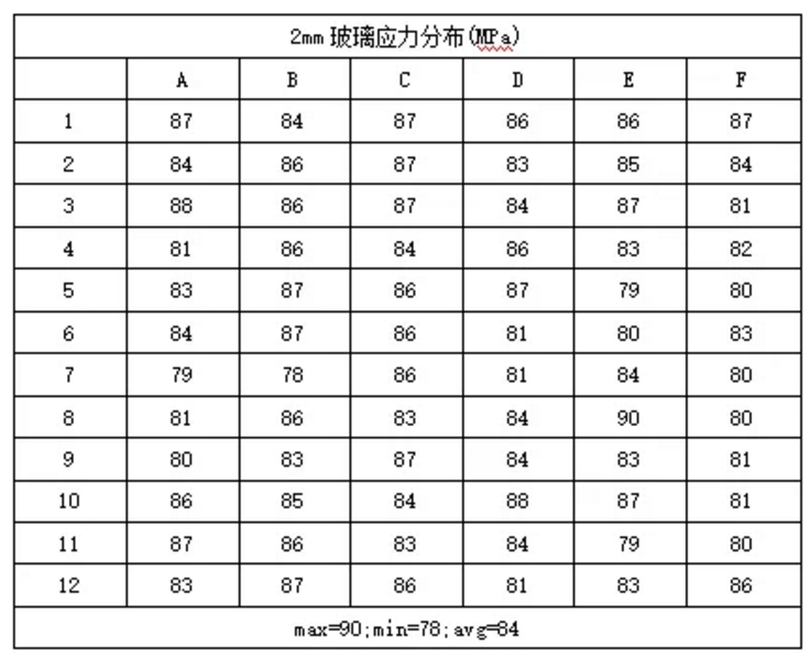 可以看到,玻璃不同位置的應(yīng)力比較均勻,沒有出現(xiàn)某個邊、某一點應(yīng)力差距過大的狀況。