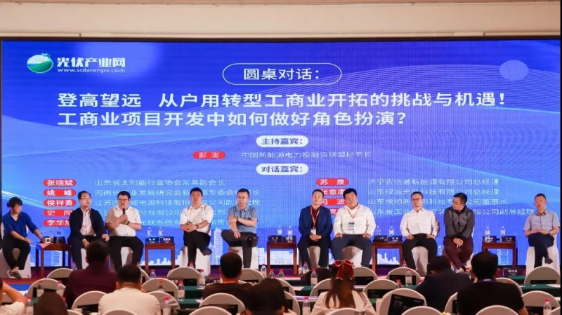圓桌對(duì)話環(huán)節(jié),李華旭與幾位光伏同行一起,就從戶用轉(zhuǎn)型工商業(yè)開拓的挑戰(zhàn)與機(jī)遇背景下,展開企業(yè)在工商業(yè)項(xiàng)目開發(fā)中如何做好角色扮演的討論。