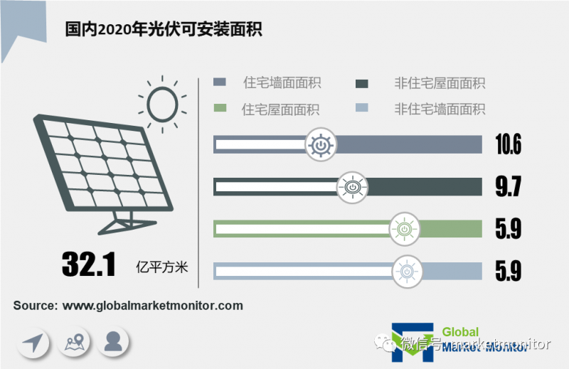 有關(guān)統(tǒng)計(jì)表明,我國每年建成的房屋面積在20億平方米左右,其中,高能耗建筑占比97%以上。在我國超過400億平方英尺的現(xiàn)有建筑物中,超過90%是能源密集型建筑物,建筑節(jié)能勢(shì)在必行。數(shù)據(jù)顯示,國內(nèi)2020年光伏可安裝面積為32.1億平方米,其中住宅墻面面積提供最多,為10.6億平方米。光伏建筑一體化具有的前景非常廣闊。