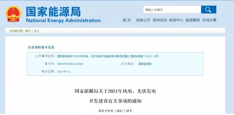 5月20日,《國(guó)家能源局關(guān)于2021年風(fēng)電、光伏發(fā)電開發(fā)建設(shè)有關(guān)事項(xiàng)的通知》正式對(duì)外發(fā)布。