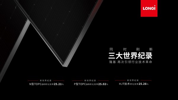 隆基刷新N型TOPCon電池、P型TOPCon電池、HJT電池三項(xiàng)效率世界紀(jì)錄