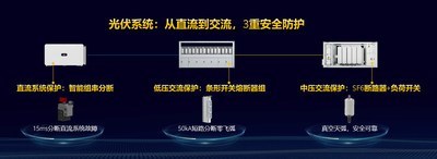 光伏系統(tǒng)3重安全防護(hù):從直流、低壓交流到中壓交流,通過智能組串分?jǐn)?條形開關(guān)熔斷器組+SF6斷路器和負(fù)荷開關(guān),實(shí)現(xiàn)端到端的安全;