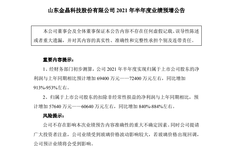 按照經(jīng)驗(yàn),最終經(jīng)審核的半年度報(bào)告,基本和業(yè)績(jī)保持一致。也就是說(shuō),金晶科技2021年上半年的歸母凈利潤(rùn)同比增長(zhǎng)近10倍。同時(shí)也是2020年凈利潤(rùn)3.3億元的兩倍以上。