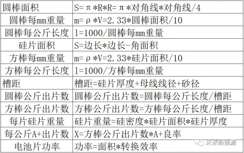 不同尺寸:硅片、電池片的面積、出片量、瓦數(shù)!