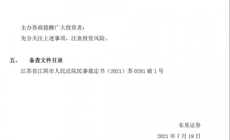 根據(jù)公司公告,江陰法院根據(jù)濰坊匯成新材料科技有限公司的申請,于2021年1月13日裁定受理海潤光伏科技股份有限公司破產(chǎn)清算一案,同日指定了無錫東華律師事務(wù)所為海潤光伏的管理人。