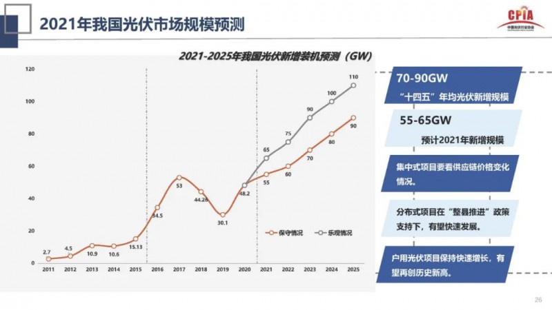 2021年是戶用光伏補(bǔ)貼時(shí)代的最后一年,據(jù)正泰安能總經(jīng)理盧凱預(yù)計(jì),在逆變器芯片供應(yīng)相對(duì)平穩(wěn)的情況下,今年戶用裝機(jī)可能達(dá)到18-20GW,再創(chuàng)新高。戶用疊加工商業(yè)分布式,分布式光伏或?qū)⒊蔀橹谓衲晷略鲅b機(jī)的主力。