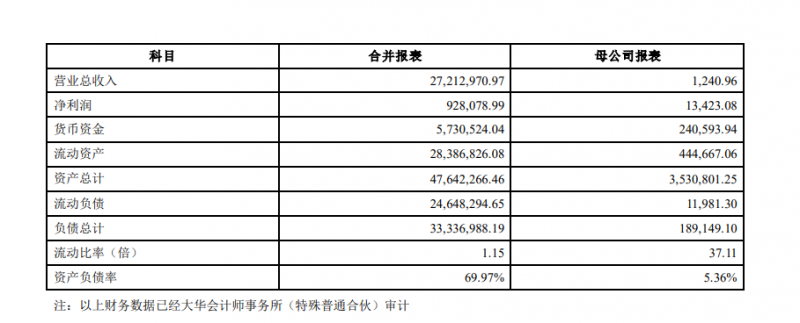 截至 2020年12月31日,中國能建集團合并報表的貨幣資金余額為 573.05 億元,母公司報表的貨幣資 金余額為 24.06 億元;2020年,中國能建集團合并報表的營業(yè)總收入及凈利潤分別為 2,721.30 億元、92.81 億元,母公司報表的營業(yè)總收入和凈利潤分別為 0.12 億元、1.34 億元。