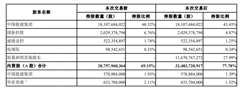 本次交易前后,中國能源建設(shè)股本結(jié)構(gòu)如下所示: