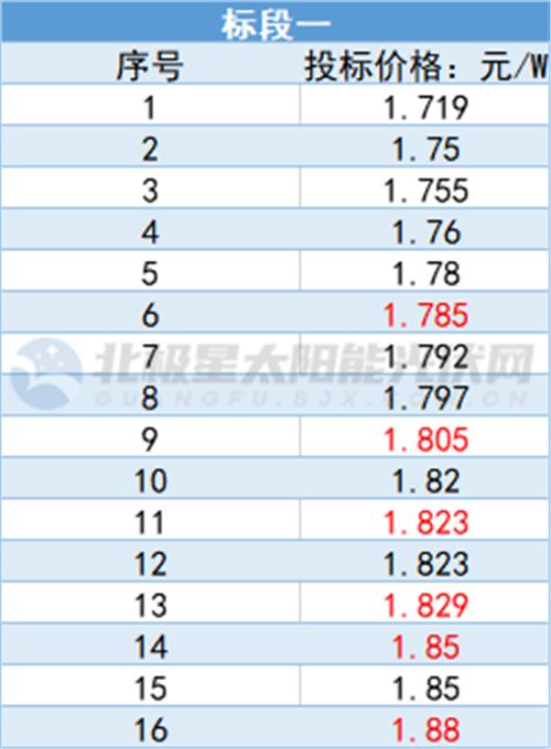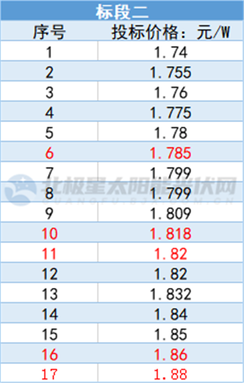 在投標企業(yè)中,全球TOP4企業(yè)中四家投標價格均在1.8元以上,最高價格來到1.88元/W,最低價格為1.805元/W,均價在1.84元/W。
