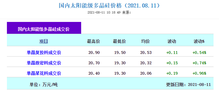 8月11日,硅業(yè)分會發(fā)布多晶硅最新價格信息,多晶硅價格在下半年五連降后首次上漲。