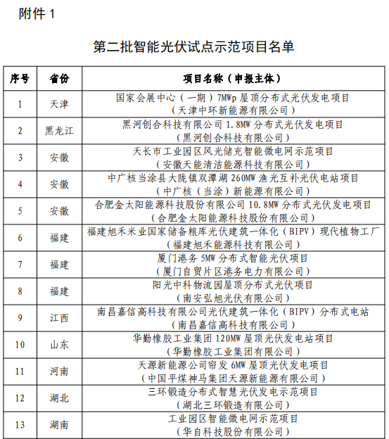 為貫徹落實《智能光伏產(chǎn)業(yè)發(fā)展行動計劃(2018-2020年)》(工信部聯(lián)電子〔2018〕68號),根據(jù)《工業(yè)和信息化部辦公廳 住房和城鄉(xiāng)建設部辦公廳 交通運輸部辦公廳 農(nóng)業(yè)農(nóng)村部辦公廳 國家能源局綜合司 國家鄉(xiāng)村振興局綜合司 關(guān)于開展第二批智能光伏試點示范的通知》(工信廳聯(lián)電子〔2021〕32號)有關(guān)要求,經(jīng)省級有關(guān)部門推薦、專家評審等程序,現(xiàn)將試點示范項目和試點示范企業(yè)名單予以公示。請社會各界監(jiān)督,如有異議,請以書面形式反饋。