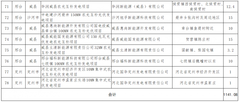 光伏發(fā)電保障性并網(wǎng)項(xiàng)目予以公示。本次擬安排風(fēng)電項(xiàng)目7個(gè)、120萬(wàn)千瓦,光伏發(fā)電項(xiàng)目78個(gè)、1141.08萬(wàn)千瓦,具體名單見附件。