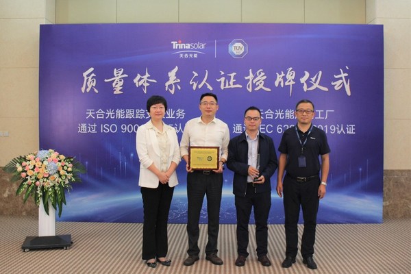 TUV南德為天合光能ISO 9001:2015質(zhì)量管理體系認(rèn)證跟蹤支架業(yè)務(wù)授牌