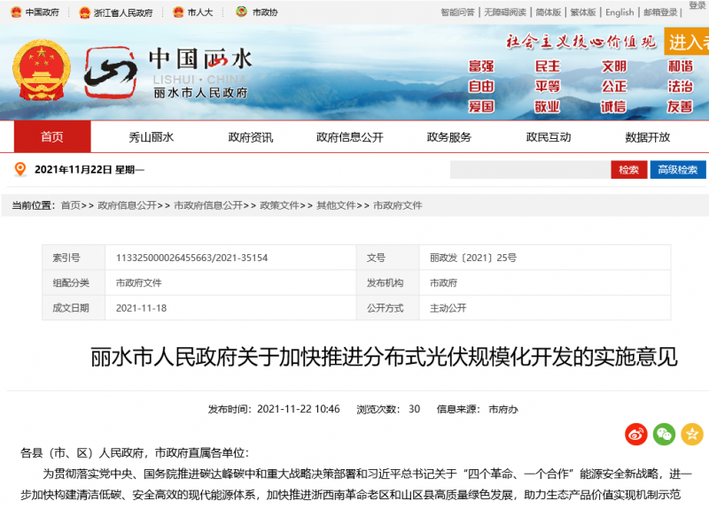 為貫徹落實(shí)黨中央、國(guó)務(wù)院推進(jìn)碳達(dá)峰碳中和重大戰(zhàn)略決策部署和習(xí)近平總書(shū)記關(guān)于“四個(gè)革命、一個(gè)合作”能源安全新戰(zhàn)略,進(jìn)一步加快構(gòu)建清潔低碳、安全高效的現(xiàn)代能源體系,加快推進(jìn)浙西南革命老區(qū)和山區(qū)縣高質(zhì)量綠色發(fā)展,助力生態(tài)產(chǎn)品價(jià)值實(shí)現(xiàn)機(jī)制示范區(qū)、城鄉(xiāng)共同富裕先行區(qū)建設(shè),根據(jù)國(guó)家和浙江省關(guān)于加快光伏應(yīng)用發(fā)展有關(guān)要求和整縣(市、區(qū))推進(jìn)分布式光伏規(guī)模化開(kāi)發(fā)試點(diǎn)工作部署,現(xiàn)就推動(dòng)我市分布式光伏規(guī)模化開(kāi)發(fā)提出如下意見(jiàn)。