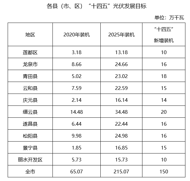 全面貫徹黨的十九大和十九屆二中、三中、四中、五中全會(huì)精神,認(rèn)真落實(shí)國(guó)家和省碳達(dá)峰碳中和工作部署,牢牢把握生態(tài)文明建設(shè)要求,加強(qiáng)統(tǒng)籌協(xié)調(diào),創(chuàng)新發(fā)展模式,加快調(diào)整優(yōu)化能源結(jié)構(gòu),以分布式光伏整縣(市、區(qū))規(guī)模化開(kāi)發(fā)為抓手,全面實(shí)施“光伏+”工程,推動(dòng)綠色低碳能源產(chǎn)業(yè)高質(zhì)量發(fā)展,著力打造華東綠色能源基地。力爭(zhēng)“十四五”全市新增光伏發(fā)電150萬(wàn)千瓦,其中市區(qū)(含蓮都區(qū)、麗水經(jīng)濟(jì)開(kāi)發(fā)區(qū))新增光伏發(fā)電20萬(wàn)千瓦。