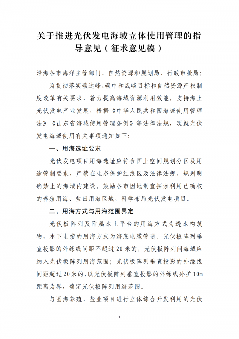附件:關(guān)于推進光伏發(fā)電海域使用立體確權(quán)的指導意見(征求意見稿)