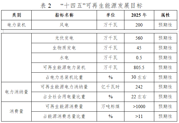 到2025年,全市投產(chǎn)可再生能源電力裝機超過800萬千瓦,占電力總裝機的比重達到30%左右,力爭開發(fā)建設(shè)規(guī)模達到1000萬千瓦;完成國家下達的可再生能源電力消納責任權(quán)重指標,可再生能源電力消納量占全社會用電量的比重達到22%左右;可再生能源消費量折合標煤超過1000萬噸,占能源消費總量的比重超過11%,力爭提高4個百分點以上。