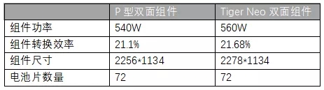 這僅僅指的是系統(tǒng)容量kWp,Tiger Neo更大的價值在于它的單瓦發(fā)電量上(kWh/kWp),也就是說如果項目容量是一樣的,一個Tiger Neo的電站要比一個常規(guī)組件電站多發(fā)3-5%電量,越高溫地區(qū)或季節(jié)、越早晚時段、系統(tǒng)使用年份越久,越是雙面組件,發(fā)電量差異就越明顯。