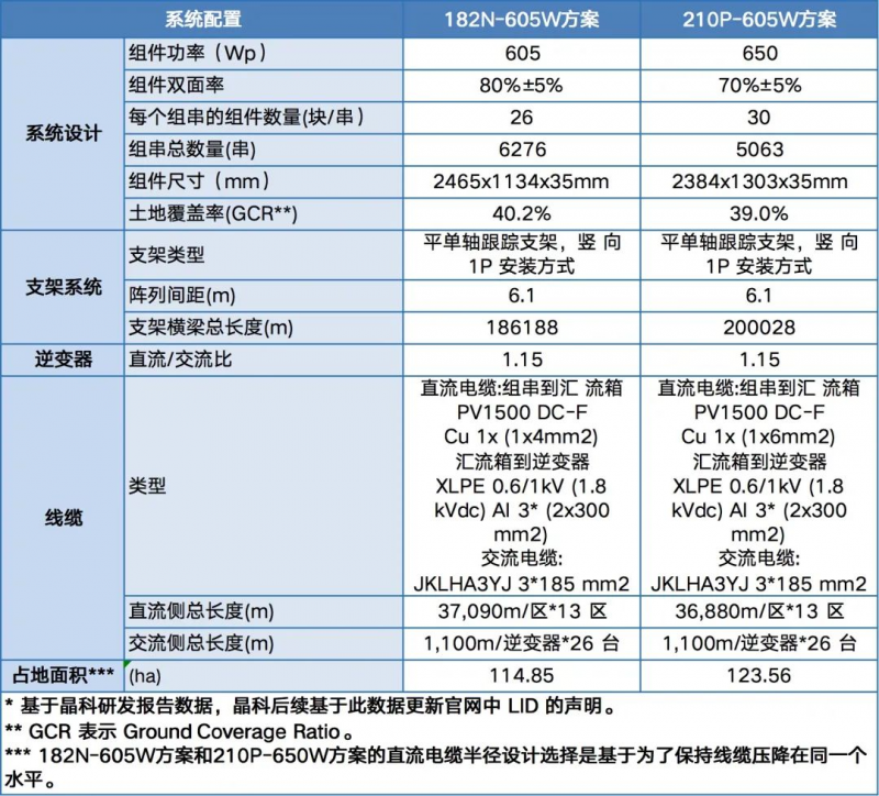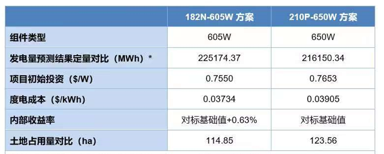 綜合BOS成本,Tiger Neo 182N-605W組件項(xiàng)目投資總成本相比210P-650W組件方案的初始投資成本減少約0.01$/W。