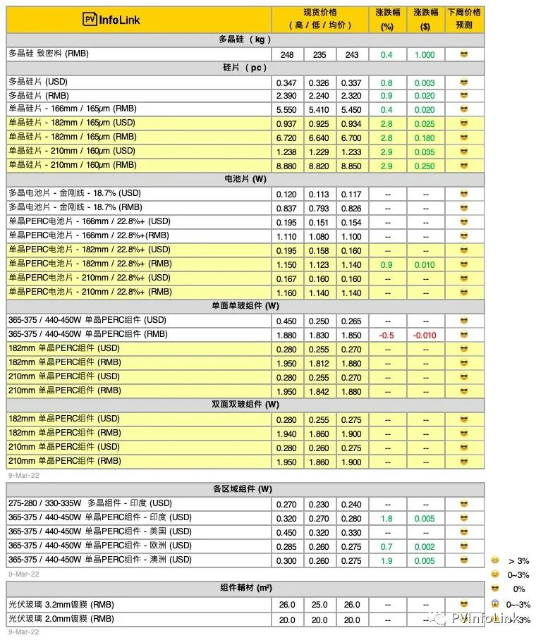 自3月起,Infolink新增182/210mm雙面雙玻組件不分區(qū)售價。