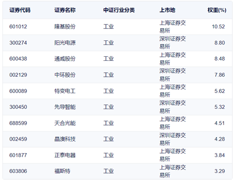 廣發(fā)中證光伏產(chǎn)業(yè)指數(shù)基金跟蹤中證光伏產(chǎn)業(yè)指數(shù),該指數(shù)從滬深市場主營業(yè)務(wù)涉及光伏產(chǎn)業(yè)鏈上、中、下游的上市公司證券中選取不超過50只最具代表性上市公司證券作為指數(shù)樣本。前十大樣本股分別為隆基股份、陽光電源、通威股份、中環(huán)股份、特變電工、先導(dǎo)智能、天合光能、晶澳科技、正泰電器、福斯特等龍頭光伏企業(yè),為市場提供一鍵布局光伏板塊的投資工具。