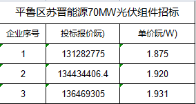 據(jù)了解,本次僅3家一線品牌投標(biāo),最低價1.875元/W,最高價1.931元/W。
