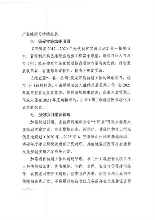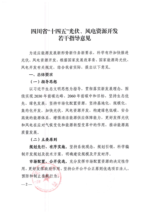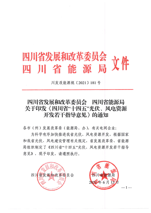 6月13日,四川省發(fā)改委、四川省能源局印發(fā)《四川省“十四五”光伏、風電資源開發(fā)若干指導意見》的通知。通知提出,到2025年底建成光伏、風電發(fā)電裝機容量各1000萬千瓦以上。