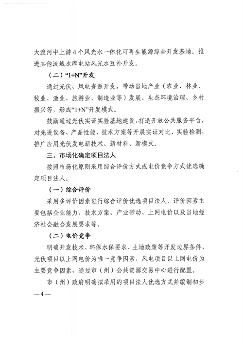 ?。ǘ╇妰r競爭:明確開發(fā)技術、環(huán)保水保要求、土地政策等開發(fā)邊界條件,光伏項目以上網(wǎng)電價為唯一競爭因素,風電項目以上網(wǎng)電價為主要競爭因素,通過市(州)公共資源交易中心進行配置。