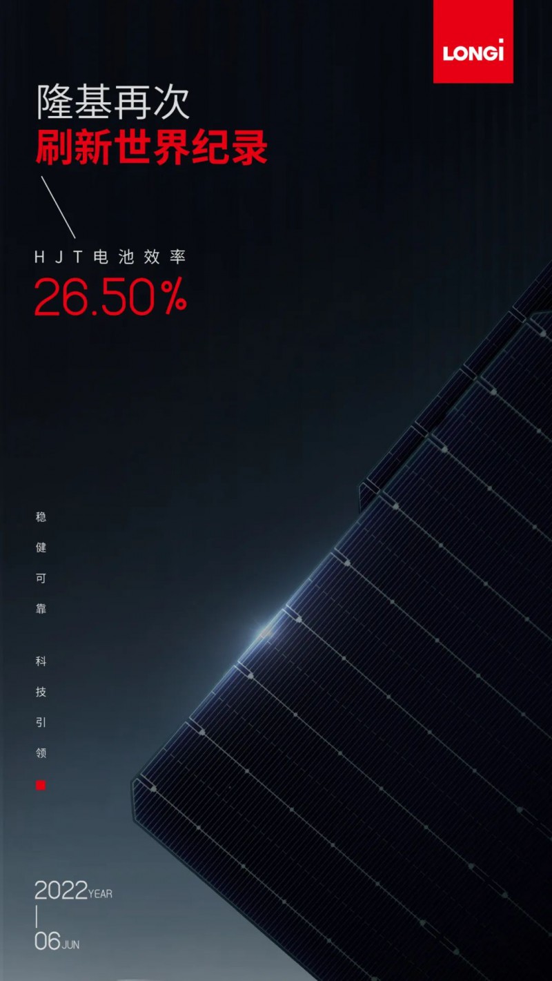 轉(zhuǎn)換率達(dá)26.50%!隆基再次刷新HJT電池效率世界紀(jì)錄