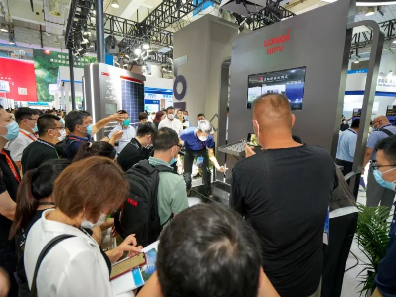 品質成就價值。上市兩周年以來,Hi-MO 5已暢銷全球94個國家,覆蓋6大洲。截至2022年7月,全球出貨突破30GW。下圖為本次展會展出的Hi-MO 5高效組件,現場人氣爆棚——
