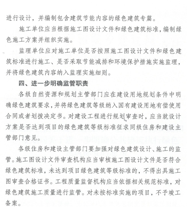 未達(dá)到項目綠色建筑等級標(biāo)準(zhǔn)的,不得出具施工圖審查合格證書。工程質(zhì)量監(jiān)督機(jī)構(gòu)應(yīng)當(dāng)依據(jù)相關(guān)規(guī)范標(biāo)準(zhǔn),對綠色建筑施工質(zhì)量進(jìn)行監(jiān)管。對未按標(biāo)準(zhǔn)實施的項目,不予竣工備案。