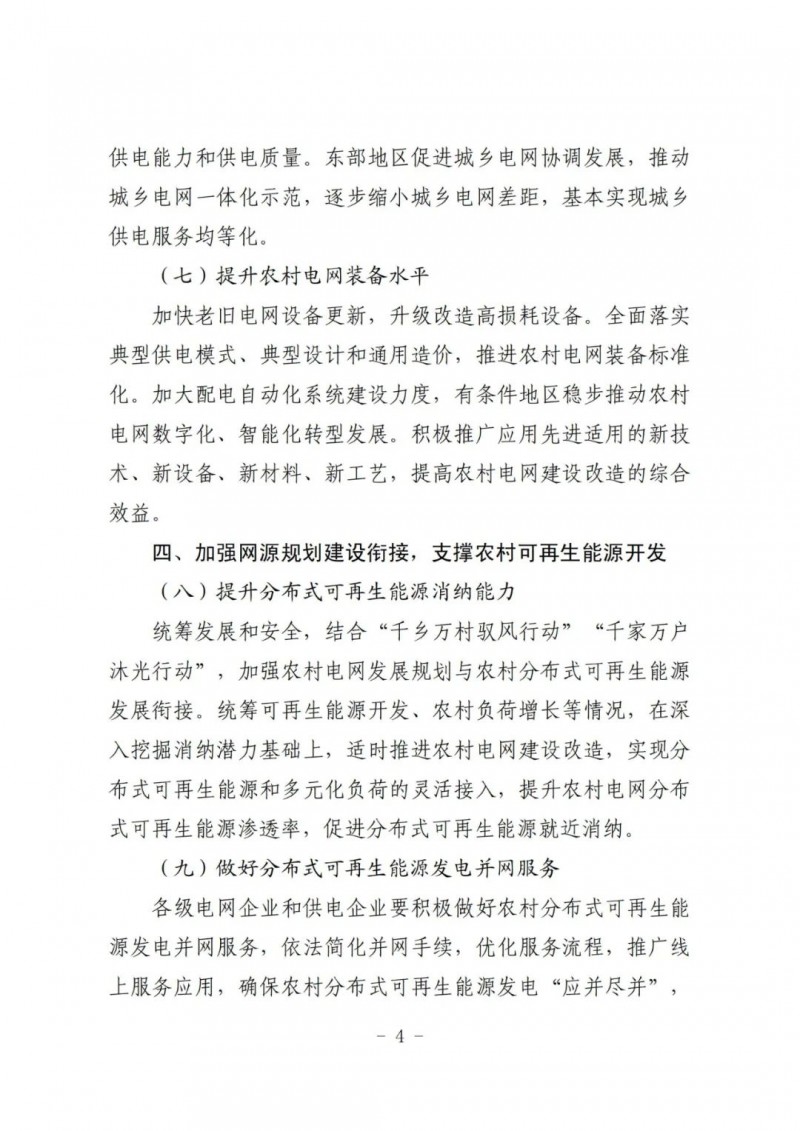 要統(tǒng)籌發(fā)展和安全,結(jié)合“千鄉(xiāng)萬(wàn)村馭風(fēng)行動(dòng)”“千家萬(wàn)戶(hù)沐光行動(dòng)”,加強(qiáng)農(nóng)村電網(wǎng)發(fā)展規(guī)劃與農(nóng)村分布式可再生能源發(fā)展銜接。統(tǒng)籌可再生能源開(kāi)發(fā)、農(nóng)村負(fù)荷增長(zhǎng)等情況,在深入挖掘消納潛力基礎(chǔ)上,適時(shí)推進(jìn)農(nóng)村電網(wǎng)建設(shè)改造,實(shí)現(xiàn)分布式可再生能源和多元化負(fù)荷的靈活接入,提升農(nóng)村電網(wǎng)分布式可再生能源滲透率,促進(jìn)分布式可再生能源就近消納。
