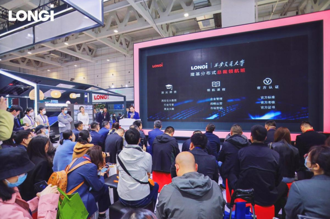 本次展會(huì)上,隆基特聯(lián)合西安交通大學(xué)成立了“隆基分布式總裁領(lǐng)航班”,以西安交通大學(xué)雄厚專業(yè)的師資力量聯(lián)合行業(yè)專家,根據(jù)經(jīng)銷商的痛點(diǎn)和難點(diǎn)定制化課程。同時(shí)還邀請(qǐng)了行業(yè)知名專家學(xué)者,將從企業(yè)管理、戰(zhàn)略運(yùn)營(yíng)、市場(chǎng)營(yíng)銷等多維度定制化深度賦能合作伙伴,助力大家的光伏事業(yè)做大做強(qiáng)。在此之外,隆基還將借助自身深厚的行業(yè)資源,聯(lián)合西安交通大學(xué)的教授老師、行業(yè)專家,對(duì)優(yōu)秀學(xué)員進(jìn)行官方考核認(rèn)證,將分布式光伏總裁領(lǐng)航班打造成分布式光伏領(lǐng)域的金字招牌。目前總裁領(lǐng)航班已開啟報(bào)名,首期培訓(xùn)班限額50名,歡迎各位合作伙伴踴躍報(bào)名。隆基將與各經(jīng)銷商客戶一起,共商、共進(jìn)、共贏。