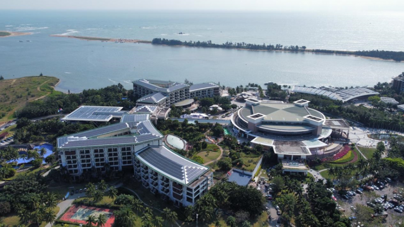 隆基森特通過(guò)綠色節(jié)能升級(jí)改造,充分利用博鰲亞洲論壇現(xiàn)有的建筑屋頂和立面,為它們換上了與眾不同的“新皮膚”——BIPV光伏發(fā)電產(chǎn)品,并成為東嶼島零碳示范區(qū)的新點(diǎn)綴。