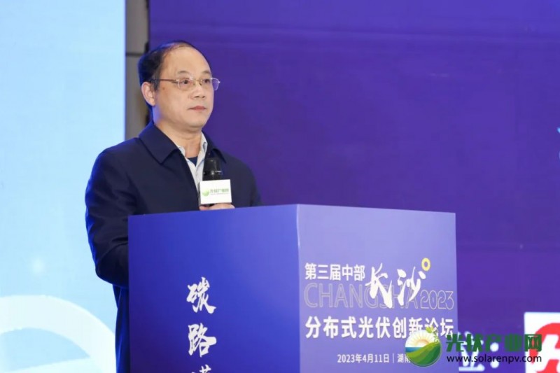2022年,湖南全年光伏新增裝機(jī)183.8萬千瓦,其中分布式光伏新增裝機(jī)達(dá)到118.8萬千瓦,較2021年同比增長了284.5%。抓住機(jī)遇,順勢而上!為助推湖南光伏市場取得新的突破,4月11日,由湖南省宏遠(yuǎn)經(jīng)貿(mào)研究院、中國新能源電力投融資聯(lián)盟、光伏產(chǎn)業(yè)網(wǎng)聯(lián)合主辦的“2023第三屆中部(長沙)分布式光伏創(chuàng)新論壇”在湖南長沙隆重召開,論壇以“‘碳’路瀟湘,追‘光’前行”為主題,邀請到主管部門領(lǐng)導(dǎo)、行業(yè)權(quán)威專家、知名廠家代表、EPC企業(yè)、渠道服務(wù)商、光伏投資商、投融資機(jī)構(gòu)等超400人齊聚一堂,共同探討湖南分布式光伏市場、整縣推進(jìn)新開發(fā)模式、BIPV發(fā)展前景、光伏+儲能發(fā)展現(xiàn)狀及趨勢等熱點(diǎn)話題,為促進(jìn)湖南省分布式光伏健康持續(xù)發(fā)展獻(xiàn)計(jì)獻(xiàn)策,貢獻(xiàn)力量!大會由中國新能源電力投融資聯(lián)盟秘書長彭澎主持,采取線上同步直播的方式,吸引了行業(yè)內(nèi)外近8000人次觀看!湖南省工業(yè)和信息化廳一級調(diào)研員肖銀鋒在致辭中表示:自2020年9月,雙碳目標(biāo)提出以來,湖南省出臺了一系列政策,推動(dòng)國產(chǎn)新能源產(chǎn)業(yè)創(chuàng)新發(fā)展。根據(jù)《“十四五”湖南可再生能源發(fā)展規(guī)劃》,到2025年,全省光伏發(fā)電總裝機(jī)規(guī)模將達(dá)到1300萬千瓦以上,被納入整縣屋頂分布式光伏發(fā)展試點(diǎn)的12個(gè)縣市區(qū),將全面啟動(dòng)開展分布式光伏就地就近開發(fā)利用,推動(dòng)工商業(yè)廠房、公共機(jī)構(gòu)、商業(yè)建筑等場所合理地安裝分布式光伏,鼓勵(lì)分布式光伏與交通、建筑、新基建等融合發(fā)展。