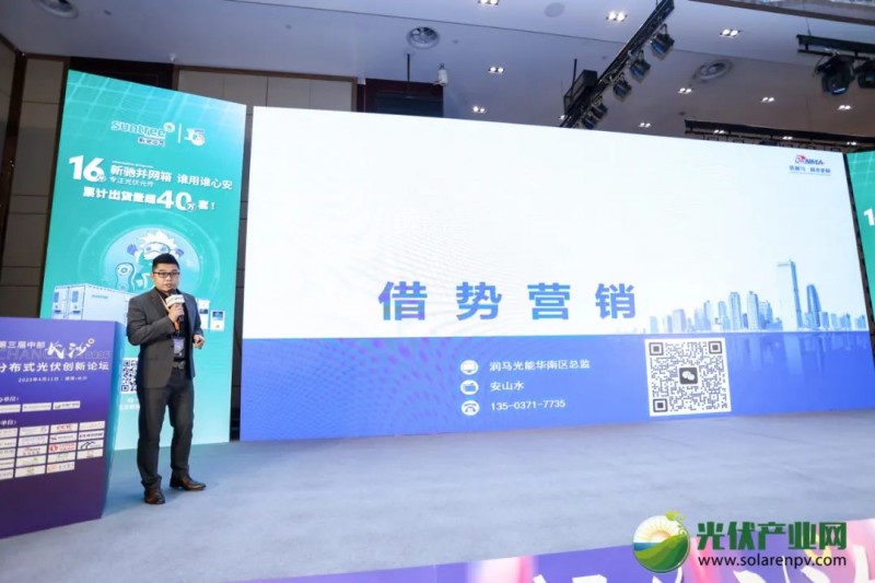 碳交易市場作為低成本減排的市場化手段,有望成為中國碳中和目標(biāo)達(dá)成的有效工具。湖南省聯(lián)合產(chǎn)權(quán)交易所雙碳服務(wù)中心總經(jīng)理?xiàng)罱¢攸c(diǎn)介紹了碳交易市場、綠色電力市場的發(fā)展現(xiàn)狀及市場空間,同時(shí)對“綠電交易與能耗雙控、綠電交易與碳交易如何協(xié)調(diào)”等熱點(diǎn)話題進(jìn)行了探討。楊健楠表示,“十四五”期間,預(yù)計(jì)石化、化工、建材、鋼鐵、有色、造紙、電力、民航8大重點(diǎn)能耗行業(yè)都將納入到碳市場,屆時(shí)配額發(fā)放可達(dá)到50億噸,中國將成為全球最大的碳排放交易市場。同時(shí)他也指出,中國碳交易市場未來可能允許綠色電力消費(fèi)企業(yè)免除一部分碳交易履約義務(wù),電碳市場雙重出售將不被允許。山東潤馬光能科技有限公司華南區(qū)總監(jiān)安山水結(jié)合項(xiàng)目案例,對公司發(fā)展歷程、品牌定位以及山東潤馬光能的技術(shù)潛力及產(chǎn)品優(yōu)勢做了詳細(xì)介紹,多維度論證了“選潤馬,回本更快”的企業(yè)理念。發(fā)言中,安山水一再表示,“潤馬的資源就是各位的資源,潤馬愿意把我們的品牌以及屬于我們的資源免費(fèi)對接給大家,為的就是合作共贏,把項(xiàng)目平安、平穩(wěn)落地。”會上,黑龍江省佳木斯市樺川縣招商專班負(fù)責(zé)人、民政局局長陳景陽做招商推介。樺川縣位于黑龍江省東北部,三江平原腹地,松花江下游南岸,這里區(qū)位優(yōu)勢明顯,自然條件優(yōu)越,產(chǎn)業(yè)基礎(chǔ)良好,擁有旺盛的市場需求和巨大的發(fā)展?jié)摿Αj惥瓣柧珠L誠摯地邀請企業(yè)家們前去投資考察,樺川必將以“企業(yè)至上”的服務(wù)意識和工作效率,讓企業(yè)家放心投資、舒心創(chuàng)業(yè)、安心發(fā)展,共同書寫合作共贏的發(fā)展新篇章。文韜《湖南分布式光伏市場競爭的現(xiàn)狀與痛點(diǎn)分享》鑫和綠色能源集團(tuán)湖南分公司總經(jīng)理文韜結(jié)合第七次人口普查數(shù)據(jù),對各省戶用光伏潛力用戶,預(yù)計(jì)裝機(jī)規(guī)模進(jìn)行了預(yù)估。數(shù)據(jù)顯示,全國有4億家庭,其中戶用光伏潛力用戶為2.7億;按照20%覆蓋率20KW/套的安裝規(guī)模考慮,戶用光伏的理論潛力為5400萬套,約合1000GW。具體到重點(diǎn)省份,湖南省戶用裝機(jī)潛力預(yù)期將達(dá)到114GW,潛在市場巨大。同時(shí),他還提出了2023年分布式市場新的八大變化,即無疫情化、由北向南化、組件波動(dòng)化、項(xiàng)目公司化、競爭白熱化、入場臺階化、模式多樣化、品牌集中化。謝明星《工商業(yè)光伏電站全生命周期解決方案》作為光伏工程一站式配套服務(wù)商,安徽莫藝建筑工程有限公司總經(jīng)理謝明星詳細(xì)介紹了莫藝創(chuàng)能的防腐、翻新、防水、加固、設(shè)計(jì)、建設(shè)的工程配套優(yōu)勢、產(chǎn)品優(yōu)勢和售后服務(wù)優(yōu)勢,通過行業(yè)案例分析光伏行業(yè)痛點(diǎn)和項(xiàng)目難點(diǎn),結(jié)合自身的產(chǎn)品優(yōu)勢和工程配套優(yōu)勢,提供針對性產(chǎn)品及解決方案,真正做到一站式配套服務(wù)。大力發(fā)展光電一體化建筑是我國建筑能源轉(zhuǎn)型中的關(guān)鍵一步,對于可持續(xù)發(fā)展具有重要的戰(zhàn)略意義!安徽宇信新材料有限公司副總經(jīng)理徐澤華從概念、分類、前景三個(gè)維度,結(jié)合公司的設(shè)計(jì)思路、方案特點(diǎn)和項(xiàng)目案例對BIPV進(jìn)行了一輪完整且系統(tǒng)化的介紹。安徽宇信光伏建筑一體化解決方案,圍繞著限流、導(dǎo)流、阻燃等幾個(gè)核心要點(diǎn)展開設(shè)計(jì),具備新老屋頂節(jié)約彩鋼瓦或翻新費(fèi)用、屋頂使用率高、便于自動(dòng)化清洗等特點(diǎn)。史志明《綠能云助力光伏電站資產(chǎn)升值分享》“綠能云的本質(zhì)是數(shù)字化管理平臺,我今天演講的主題,是如何讓資產(chǎn)變現(xiàn)升值、獲得最大收益。”綠能中環(huán)(西安)新能源科技有限公司副總裁史志明的發(fā)言開門見山。“不過這一切都有個(gè)前提,那就是把運(yùn)營管理的服務(wù)做到標(biāo)準(zhǔn)化,才能夠?qū)崿F(xiàn)降本增效。”史志明從市場引導(dǎo)、產(chǎn)品賦能、成本管控、服務(wù)體系四個(gè)維度詳細(xì)介紹了公司的業(yè)務(wù)模式,他將產(chǎn)品特點(diǎn)概括為九個(gè)字“用得起、用得上、用得好”。王保頌《工商業(yè)分布式光伏融資租賃實(shí)務(wù)》“相較于銀行項(xiàng)目的產(chǎn)品,融資租賃有著效率高、放款早、產(chǎn)品靈活等特點(diǎn),更適合分布式電站場景。”國藥控股租賃清潔能源南區(qū)負(fù)責(zé)人王保頌表示。作為國務(wù)院國資委直接管理,綜合實(shí)力和規(guī)模領(lǐng)先的綜合性醫(yī)藥健康產(chǎn)業(yè)集團(tuán),目前,國藥控股的服務(wù)網(wǎng)絡(luò)覆蓋全國22個(gè)省,5個(gè)自治區(qū),4個(gè)直轄市,服務(wù)客戶數(shù)超過4000+。李雨龍《光伏儲能專項(xiàng)貸款,長沙銀行助力雙碳經(jīng)濟(jì)》長沙銀行作為湖南最大的法人金融企業(yè),近年來堅(jiān)持將綠色金融列入四大特色戰(zhàn)略品牌之一,深入推進(jìn)綠色信貸體系建設(shè),不斷創(chuàng)新產(chǎn)品和服務(wù),持續(xù)發(fā)揮湖湘綠色金融先
