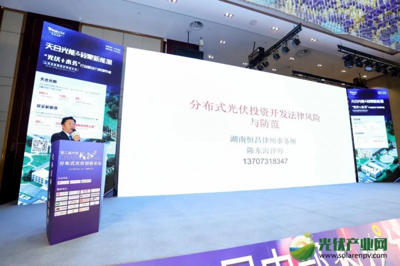 “如果說地面光伏電站最大的法律風(fēng)險(xiǎn)在于土地的話,那么分布式光伏最大的法律風(fēng)險(xiǎn)無疑就是屋頂!”近年來,分布式光伏項(xiàng)目案件日益增多,從側(cè)面反應(yīng)出分布式光伏項(xiàng)目火熱的程度,但也暴露出不少現(xiàn)存問題。湖南恒昌律師事務(wù)所律師陳東海以法律人的視角,對分布式光伏投資開發(fā)中可能會遇到的各類問題逐一分析,不僅有常見的電站選址、鄰里矛盾,還有審批備案、施工建設(shè)過程中,必須要考慮到的法律依據(jù)。干貨滿滿的主題分享結(jié)束以后,中國新能源電力投融資聯(lián)盟秘書長彭澎與7位對話嘉賓圍繞“電力市場改革下湖南分布式光伏發(fā)展之道”這一話題進(jìn)行了深入的探討與交流。