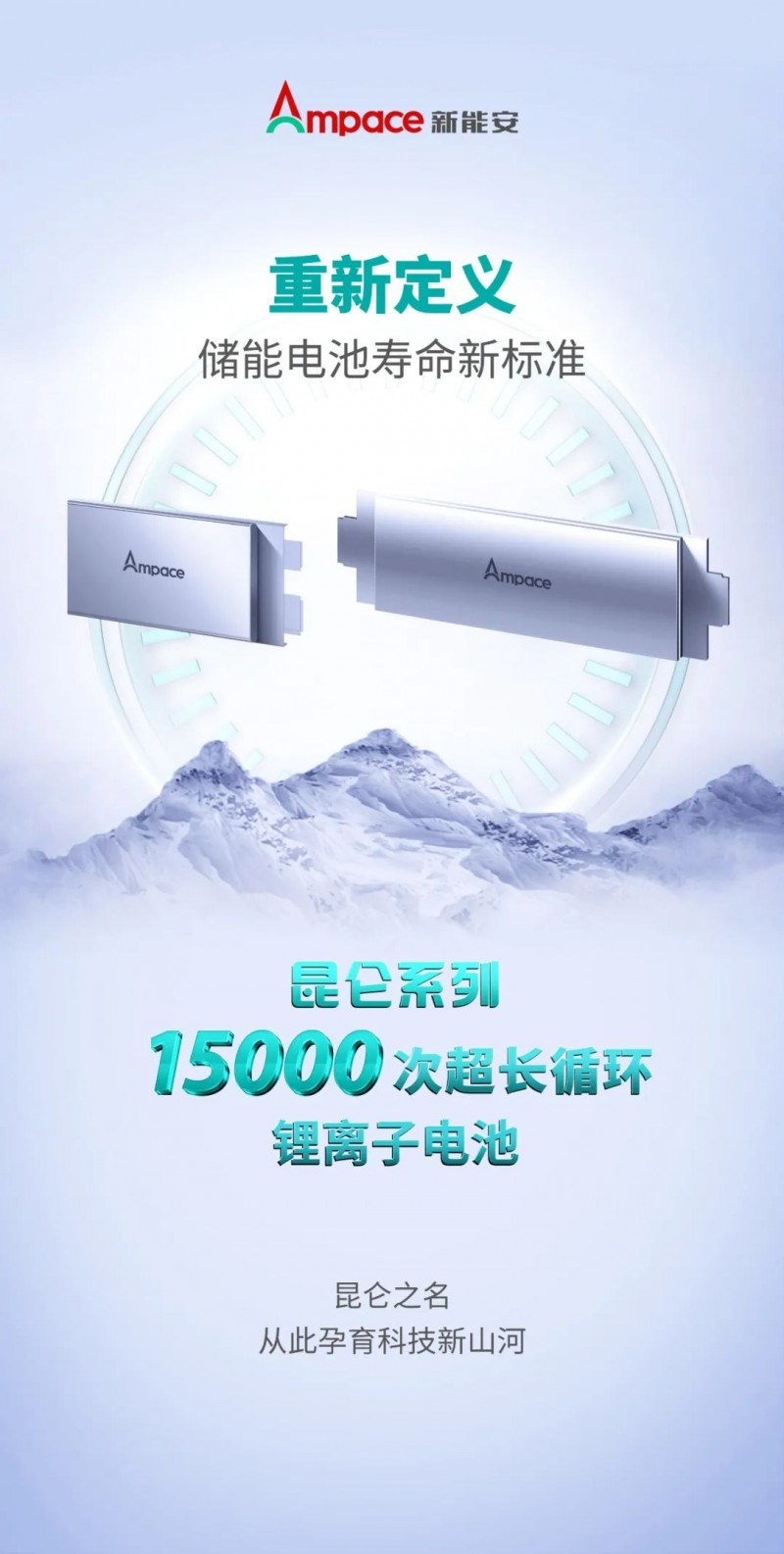 在主題為“新能智儲 聚量能安”的新品發(fā)布會上,Ampace新能安重磅首發(fā)昆侖系列15000次超長循環(huán)鋰電池,顛覆性革新鋰電池循環(huán)壽命行業(yè)極限,重新定義儲能電池壽命新標(biāo)準(zhǔn)。
