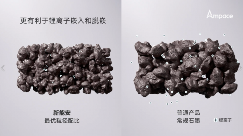在技術(shù)創(chuàng)新上,新能安昆侖系列鋰電池首次采用新型預(yù)鋰化技術(shù)構(gòu)建 “蓄鋰池”,實現(xiàn)對系統(tǒng)損耗鋰離子的補充;在化學(xué)體系創(chuàng)新上,新能安昆侖系列鋰電池在石墨及電解液都使用了行業(yè)首創(chuàng)配方,實現(xiàn)對鋰離子損耗速度的減緩。其中,新型石墨具備更穩(wěn)定的結(jié)構(gòu),循環(huán)過程中可實現(xiàn)鋰離子自由脫嵌,且可減少產(chǎn)生新的界面及活性鋰離子消耗;新型電解液引入新能安自研添加劑,在石墨表面構(gòu)建致密均勻的保護膜,從而減少循環(huán)過程中鋰離子的損耗。
